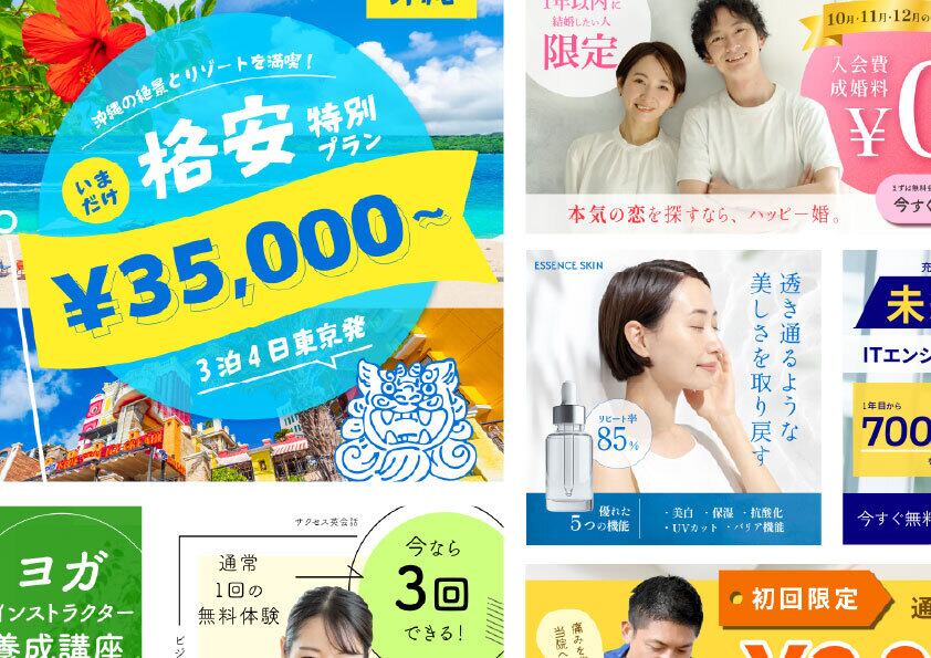 ECサイトやSNS広告等に使用するバナーを作成いたします。